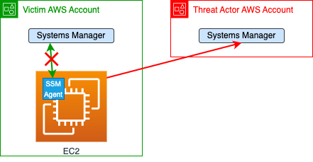 - Adversaries can use their own malicious AWS account as a Command and Control (C&C) server, enabling them to control the SSM agent. This allows their communication to appear legitimate, making it harder to detect their activities in most cases.