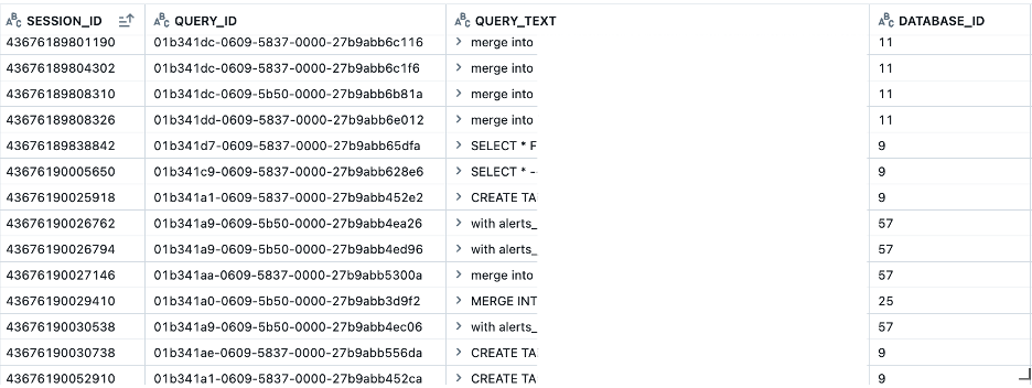 - Logs all queries within the account, aiding in identifying suspicious or unauthorized queries potentially indicative of data exfiltration attempts.